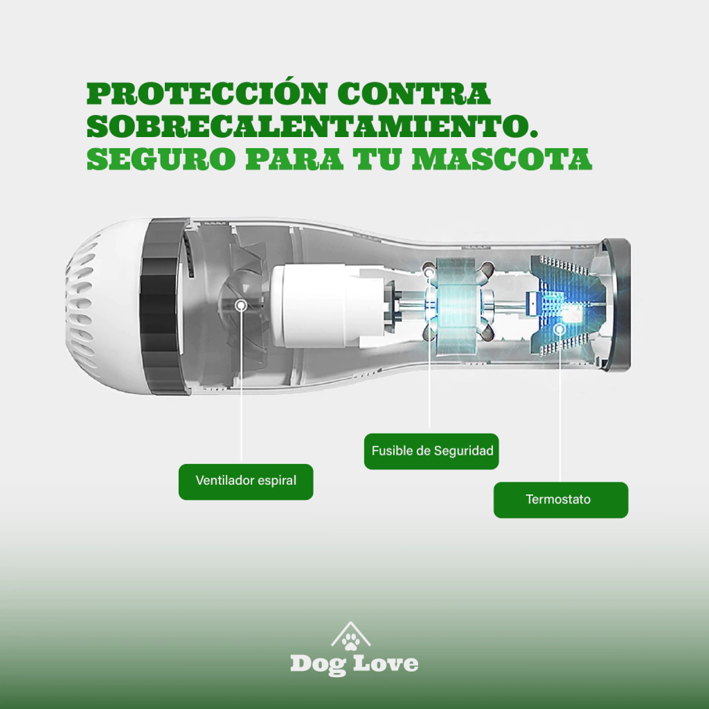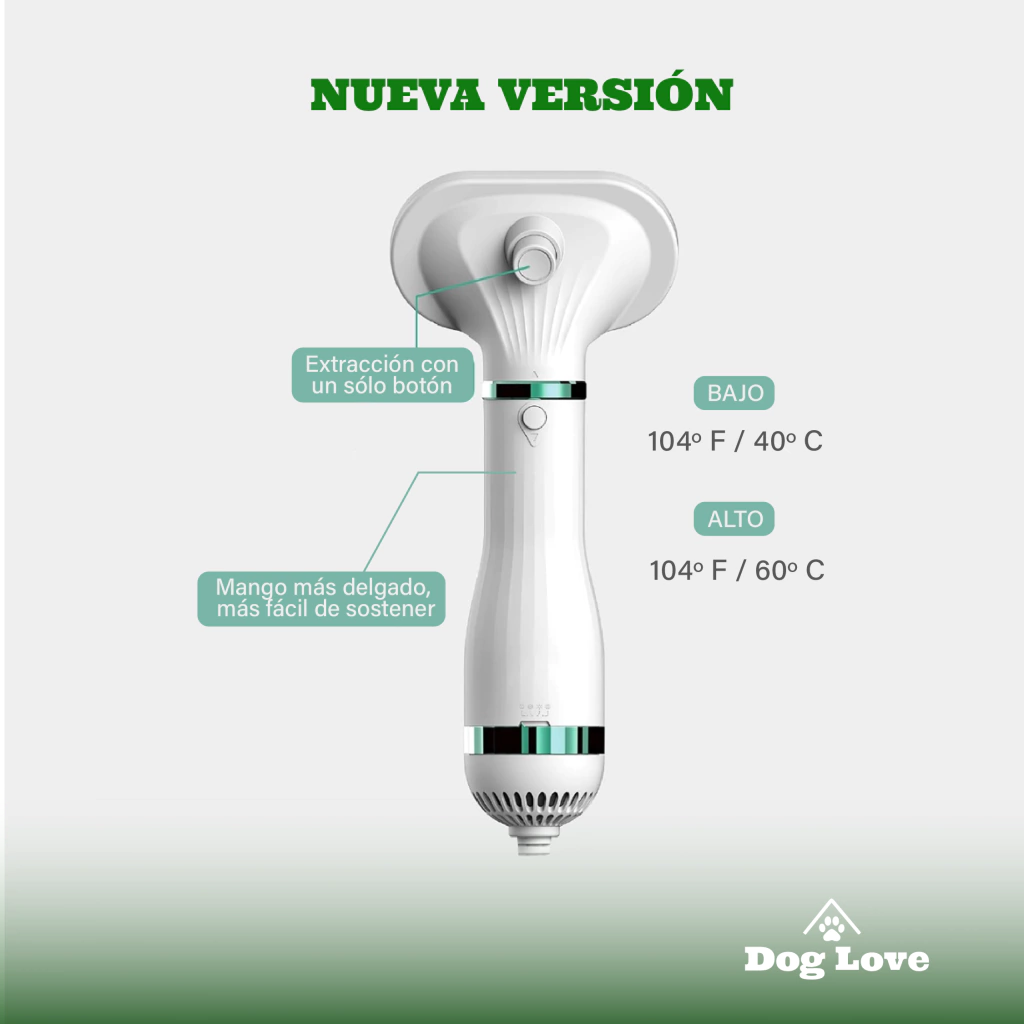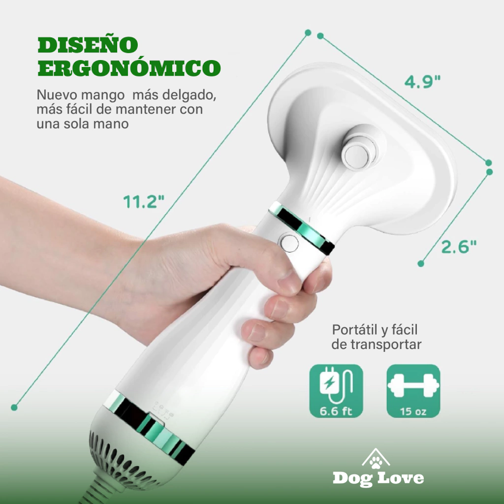 Su diseño innovador y tecnología avanzada permiten deshacerse de los pelos muertos mientras se seca el pelaje, manteniendo a tu perro limpio y fresco.